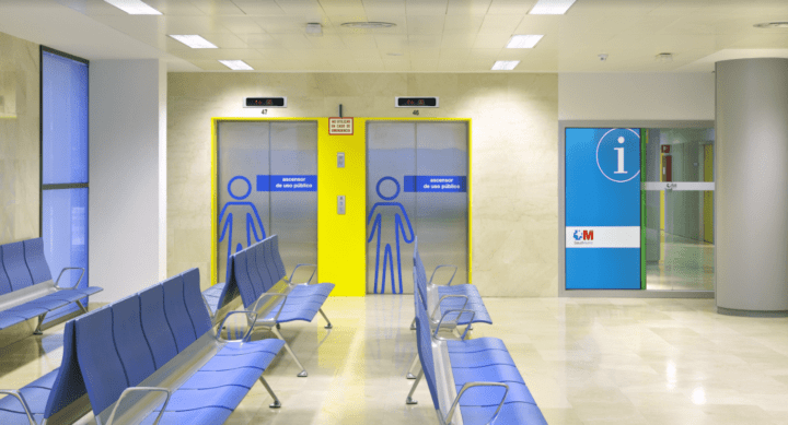 At FAIN Ascensores we are responsible for the maintenance of the 39 systems installed in this building. In fact, there is a team of three technicians working over three shifts, that is, 24/7 exclusively for this hospital centre, where they are all high-speed lifts.