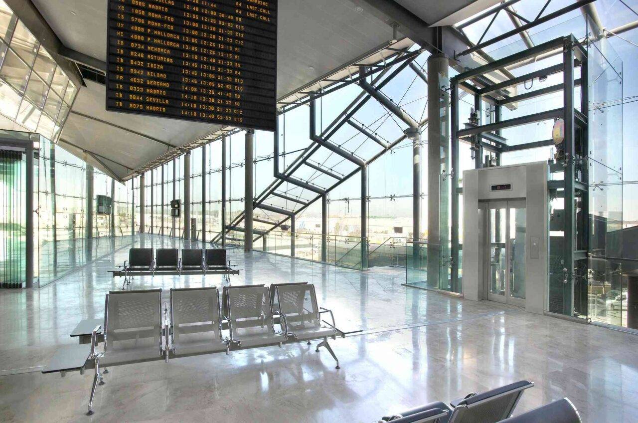 At this airport, we have installed a total of 7 elevators, including three panoramic elevators, 4 escalators and a mobile ramp.